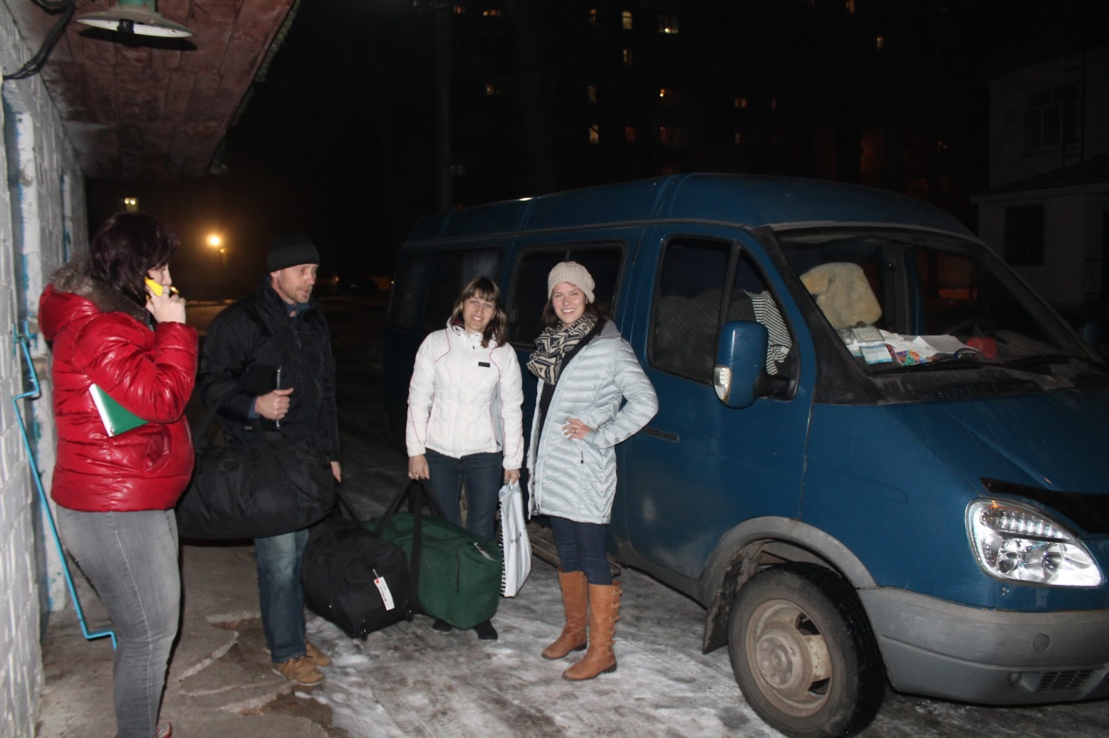 Natalie delivering donated clothing to a war refugee hostel in Kotsiubynske, Ukraine |